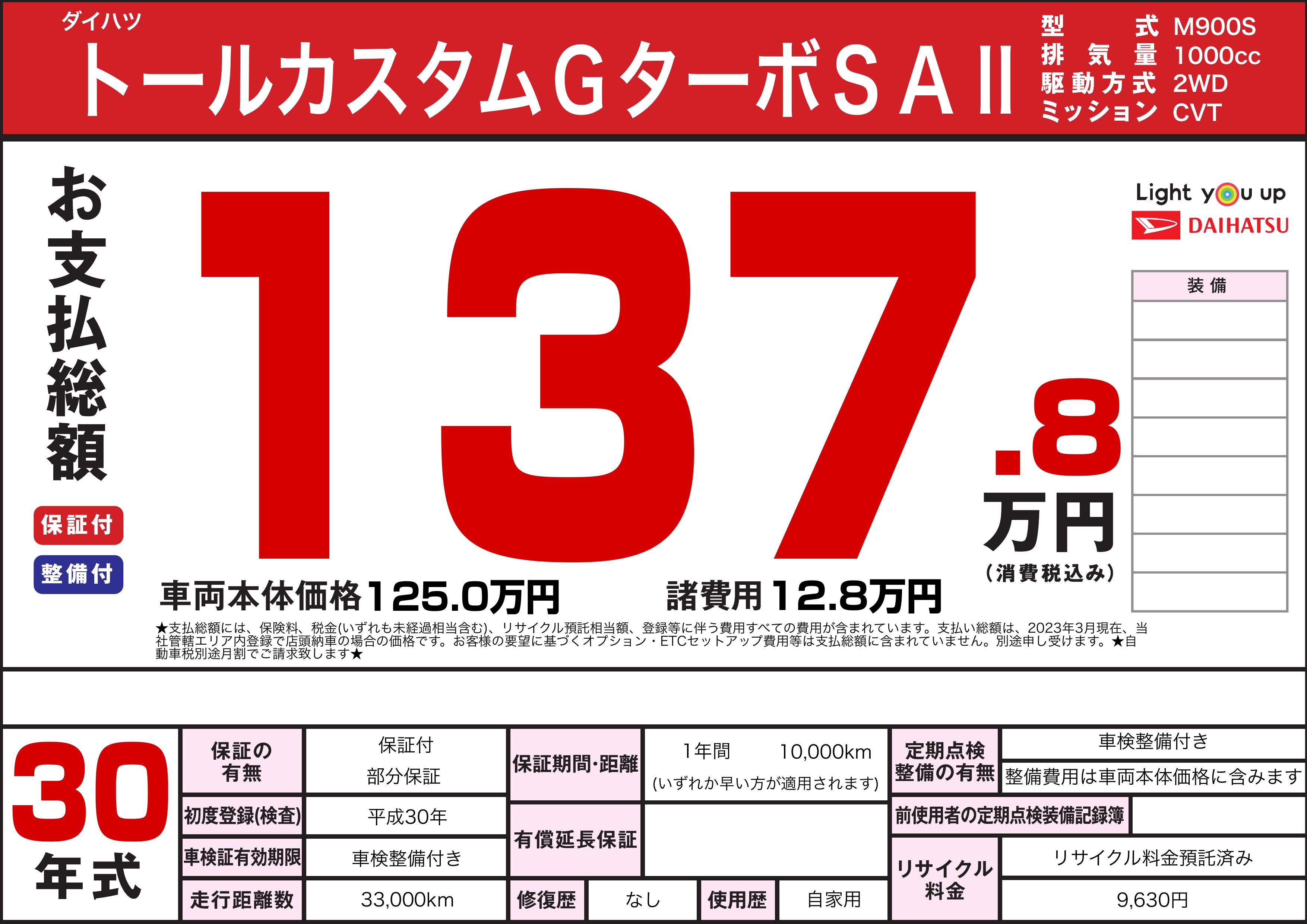 平成30年 トールカスタム