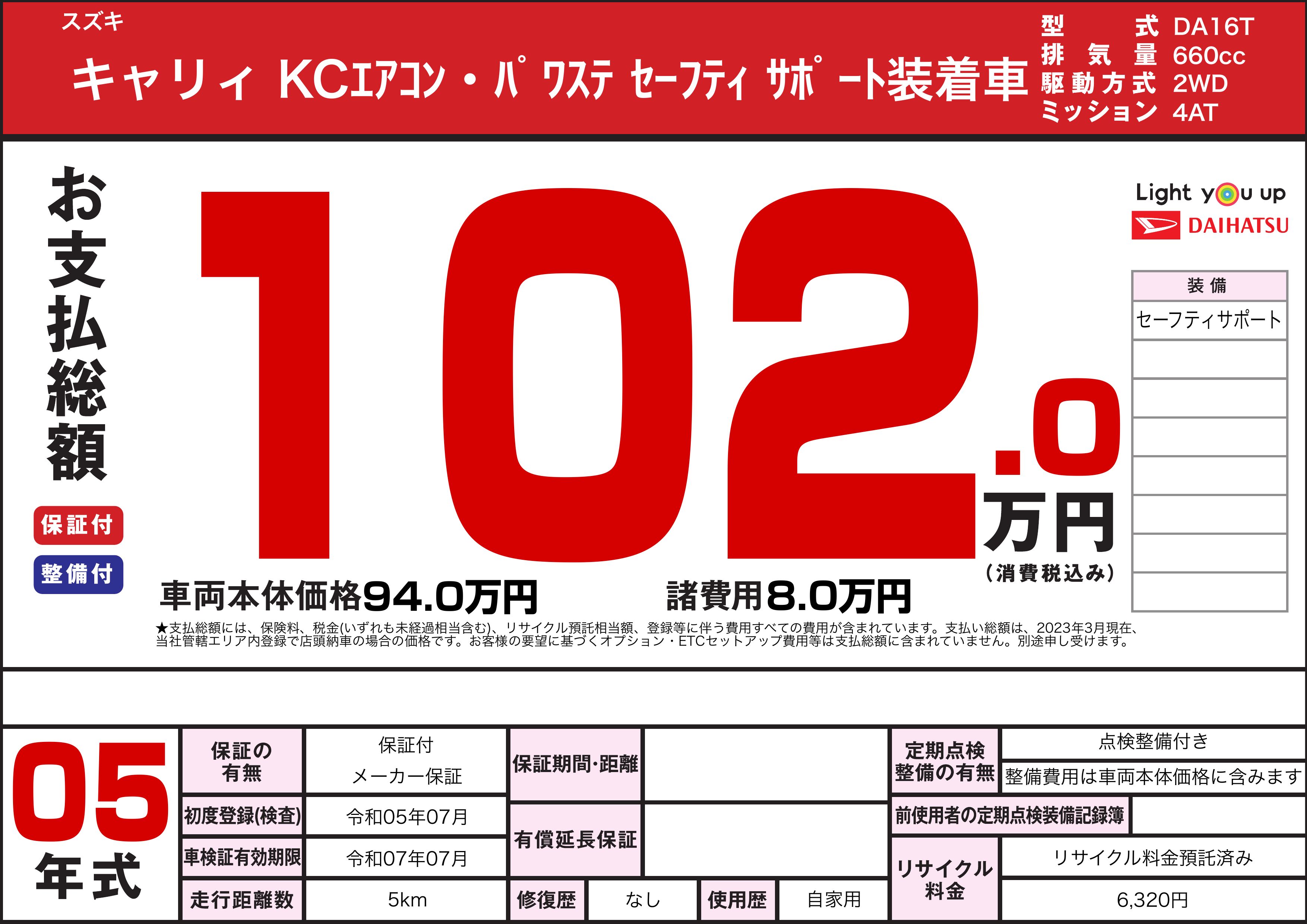 令和5年 キャリィ 【未走行車】